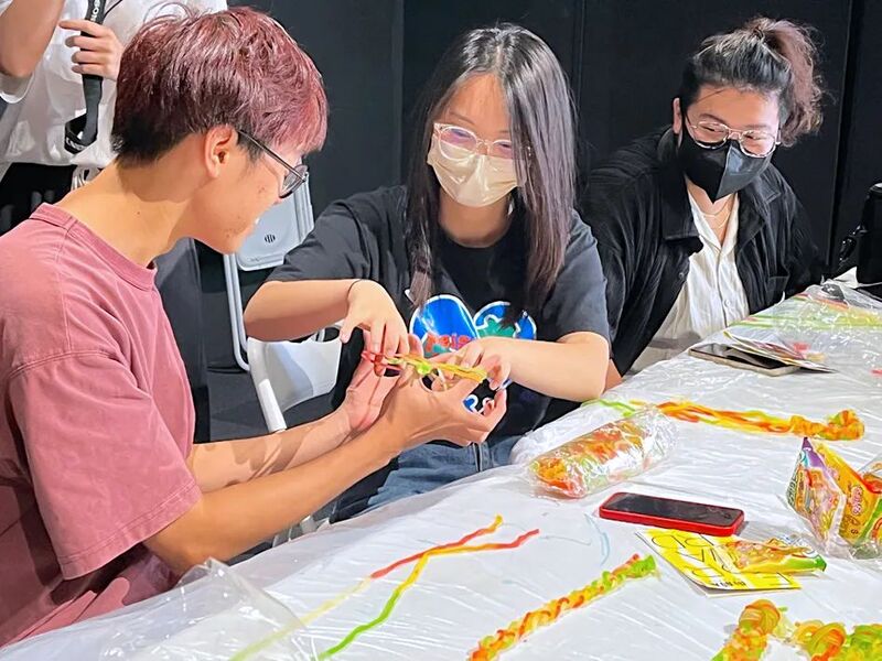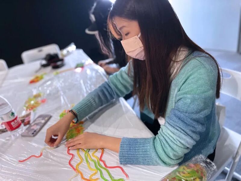△ 参与者们在工作坊现场编织香甜的糖绳