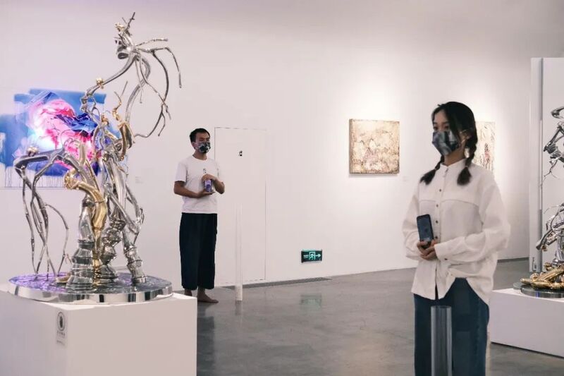 《用珍珠测量》与仓美术馆正在进行的展览“向前展-致敬不间断的输出”之间产生了微妙的反应。1号空间内所展出的当代绘画、雕塑、装置等作品,以其或冰冷、或暧昧的材质呈现出艺术创作中持续向上的创作动力、蓬勃汹涌的艺术能量,和艺术家永不停歇的思考与表达。