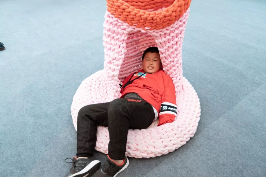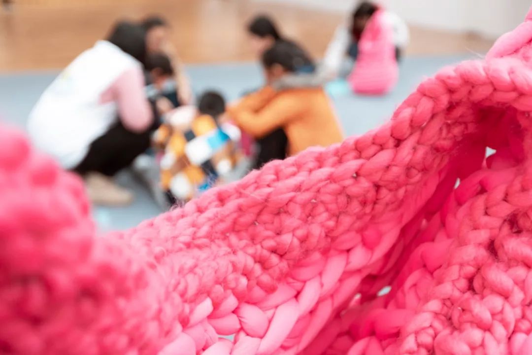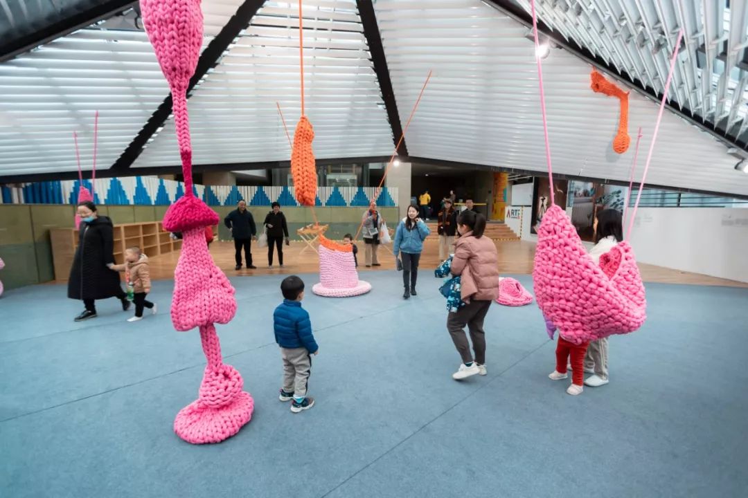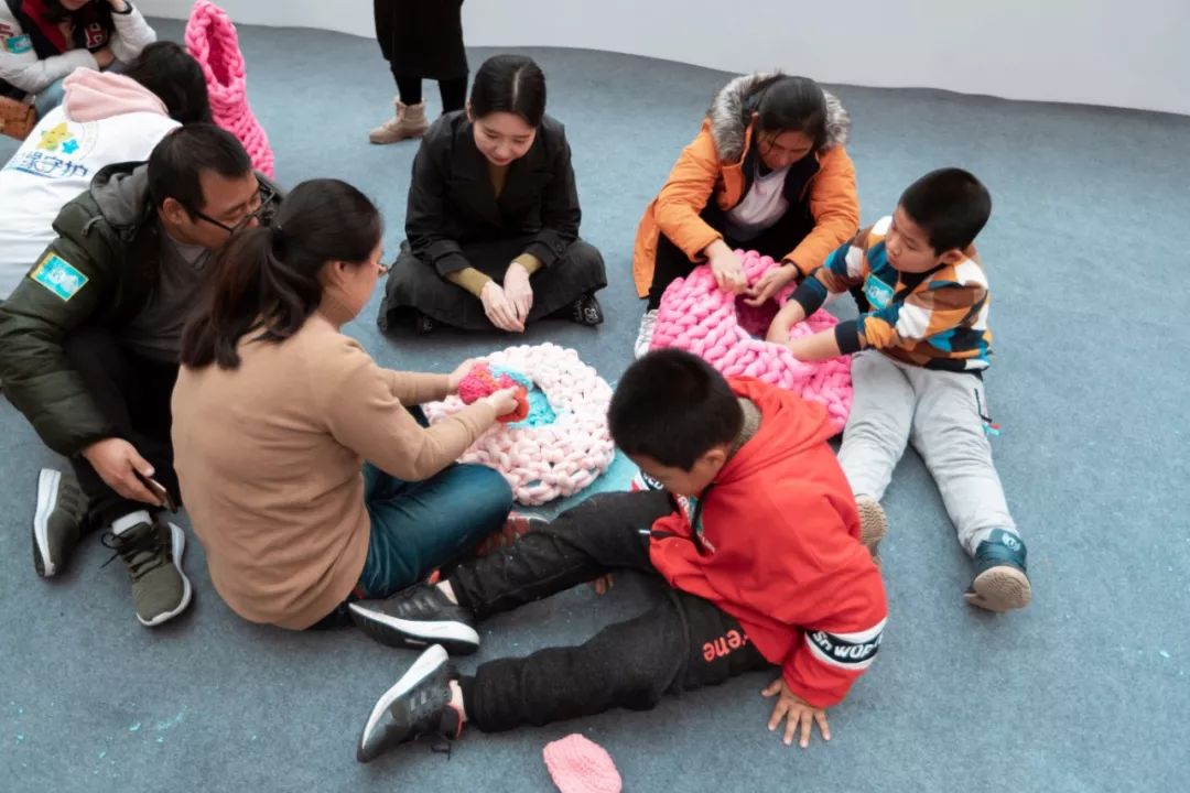 此外在12月19日下午,杭州贝蓓儿童康复指导中心的小朋友们也在家长和老师的带领下来到了浙江美术馆,触摸和感受了艺术家林依凡的作品。在工作人员的带领下还参观了纤维展的其他作品,在欢声笑语中结束了美术馆之旅。
