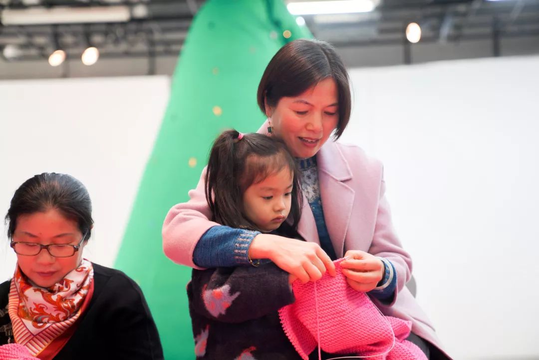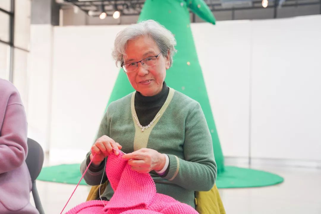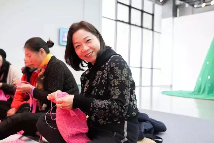 “无界之归”也蕴含着编织无界限。打毛线没有年龄性别的限制,也不存在国籍的界限。编织活动除了吸引到阿姨,还有大叔、小朋友、80、90后。12月11日来的编织达人中间,就有一位乌克兰姐姐Nata,今年45岁。她说是看了英文报纸的宣传找到美术馆的。
