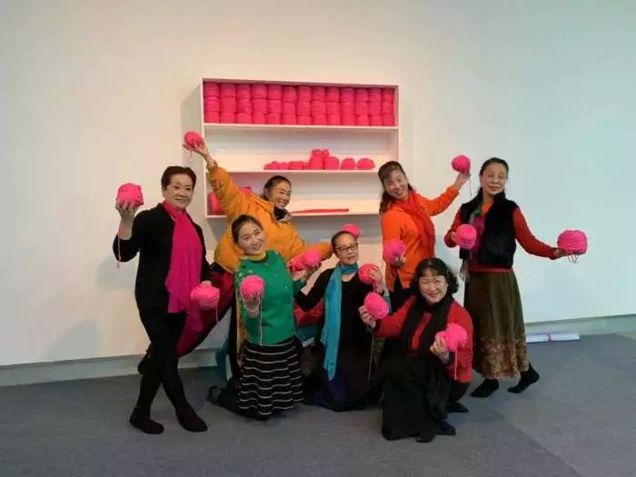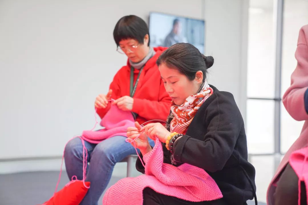 当年的志愿者阿姨们一边聊天一边织,一直织到下午5点美术馆闭馆才离开