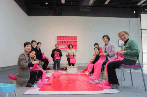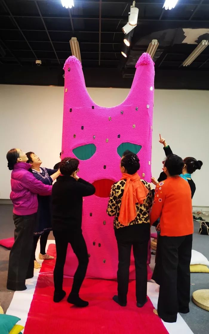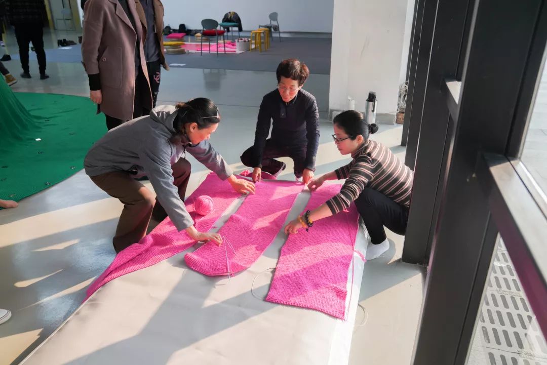 这让这件艺术作品的幕后艺术家、中央美院艺术家胡尹萍非常感动,“杭州的编织达人们真是太赞了!她们给我的感觉就是热情、专注、能干,凝聚力非常强。而且我发现这个项目里,阿姨们在编织的时候,始终是非常开心的状态,这让人感觉很暖。”