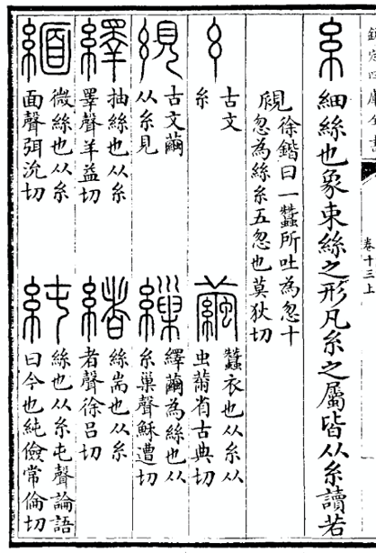 《说文解字》第十三卷糸部 清四库全书荟要本