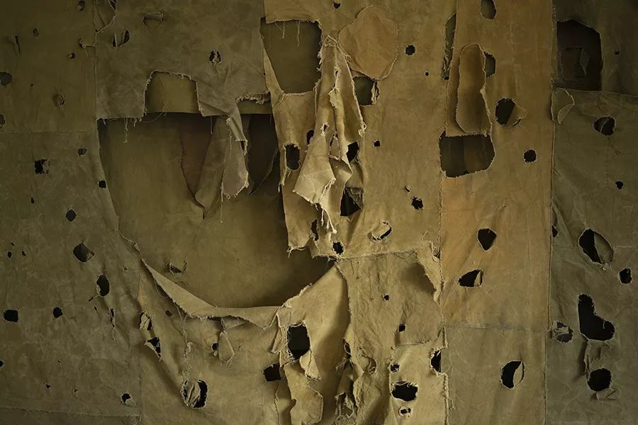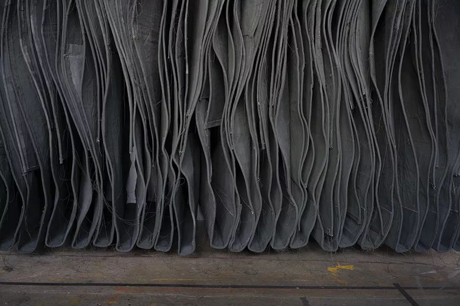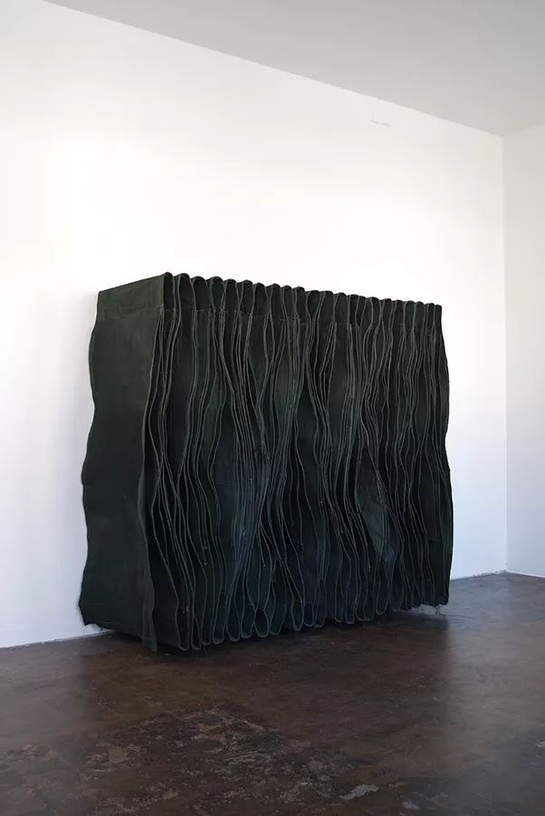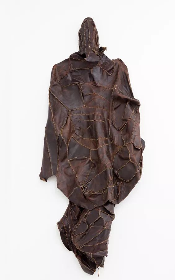 《马坦萨》是用麻线将皮革废料手工缝制成的一件作品。废皮料的自然边缘决定了如何缝制,完成后的作品使艺术家想到了裹尸袋,继而想到那些在皮革产业中死掉的牛,所以才会起了这个名字。