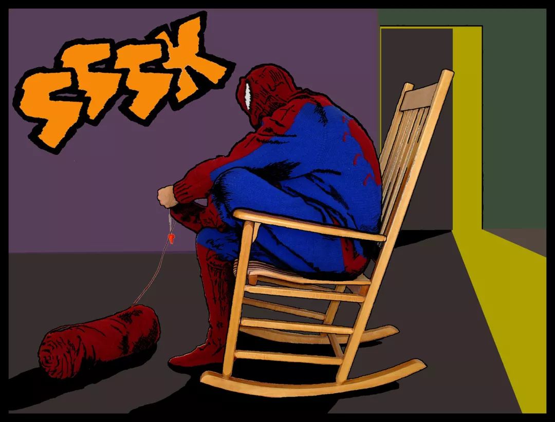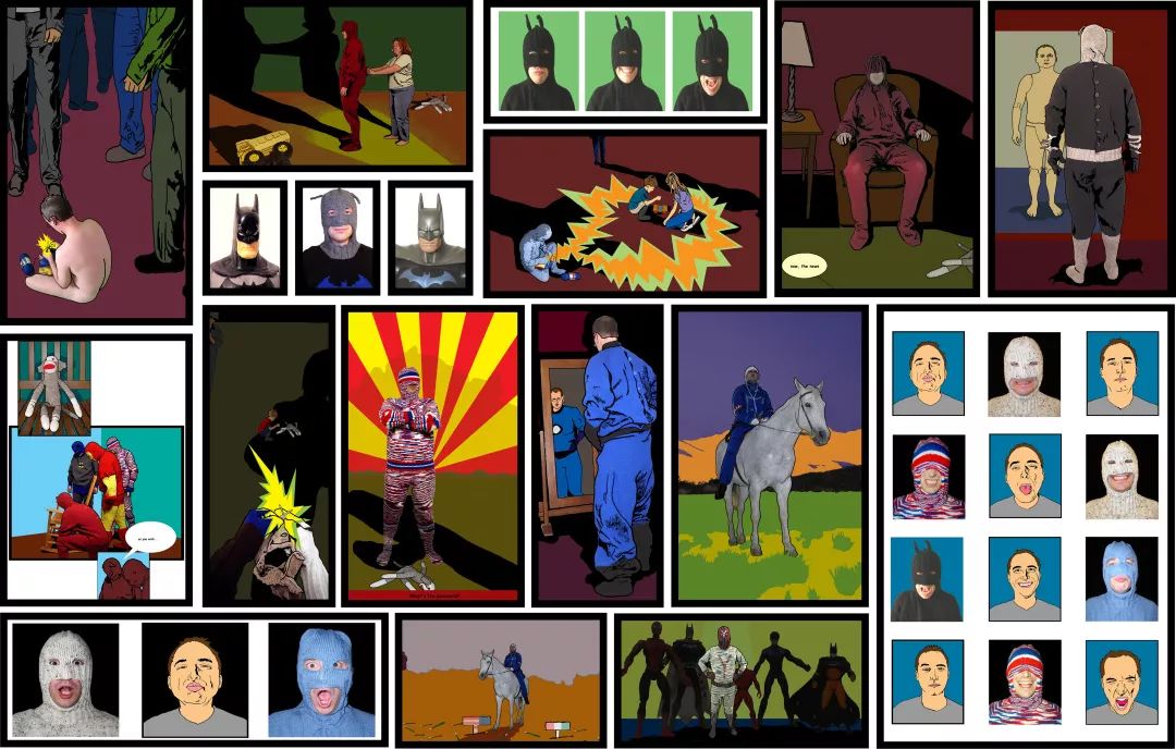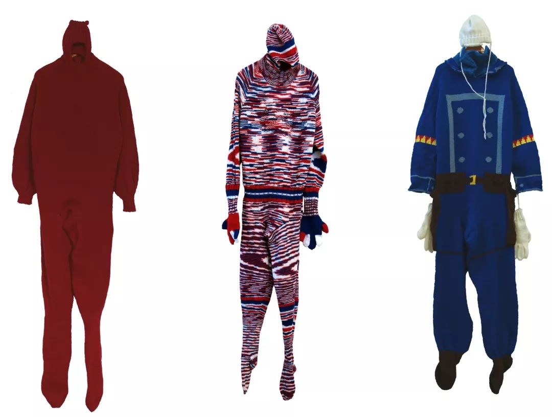 毛衣人、Every-Any-No Man和绒球人都是我自己创造出来的英雄。强调了纺织材料、纹理和服装形式的传统(用线和“剩余”的材料做毛衣)来塑造英雄的形象。一些颜色和质地借鉴了我母亲织造的毛衣,也就是她喜欢的线和颜色。在这些作品中,我致力于把童年经历和成年人对保护主义、阳刚之气和英雄气概的理解联系起来。