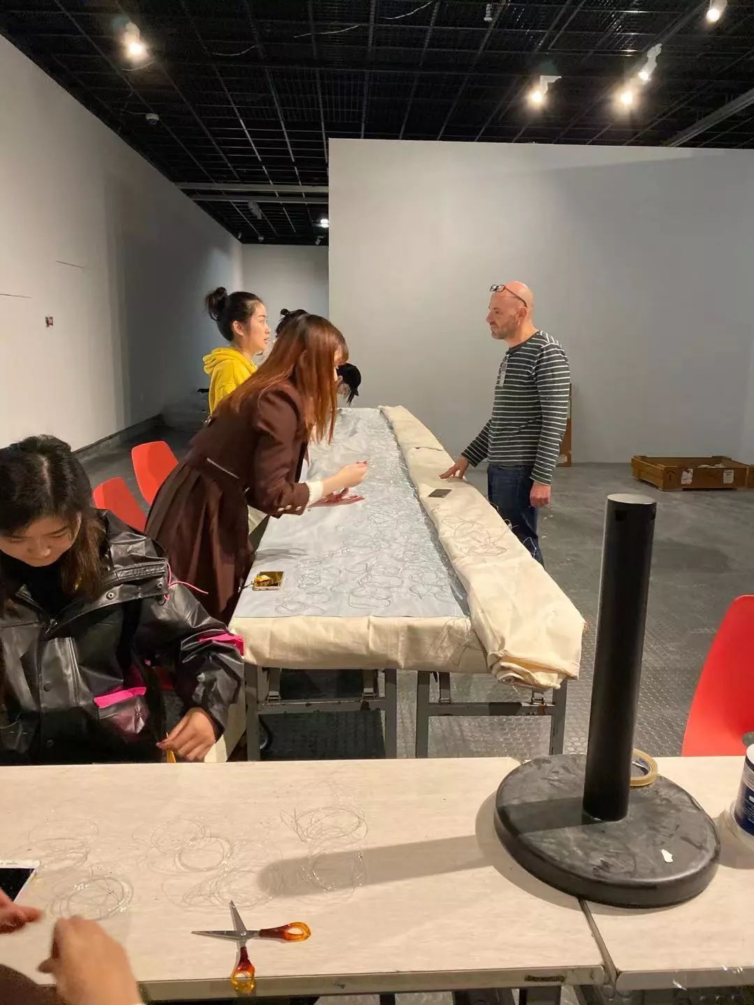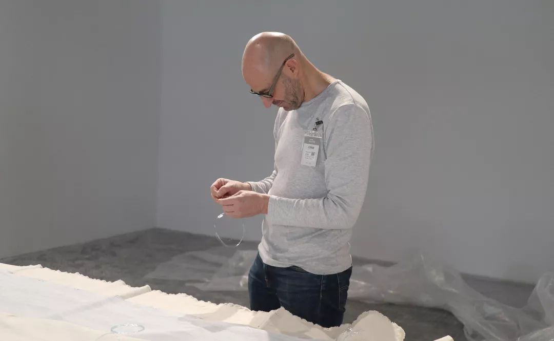 阿根廷艺术家Miguel Rothschild擅长以织物塑造海浪效果,此次展出的其代表作《挽歌》将用近千根丝线将织物吊起。