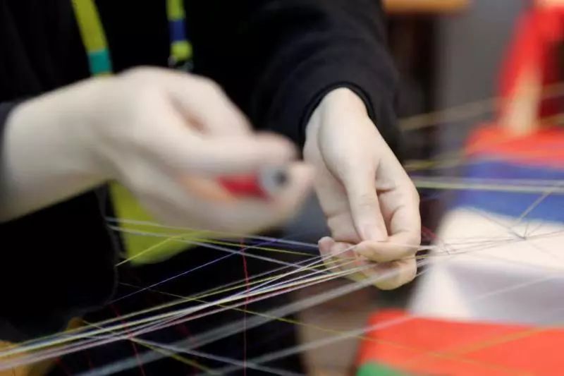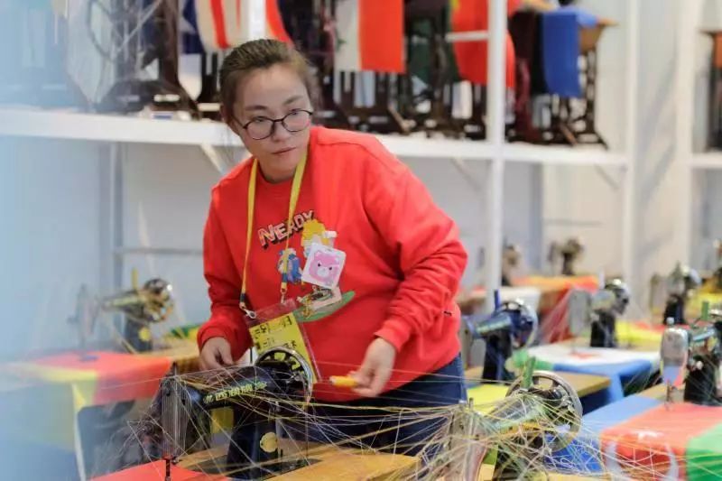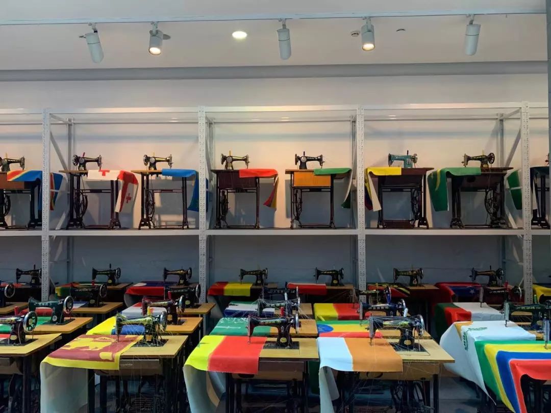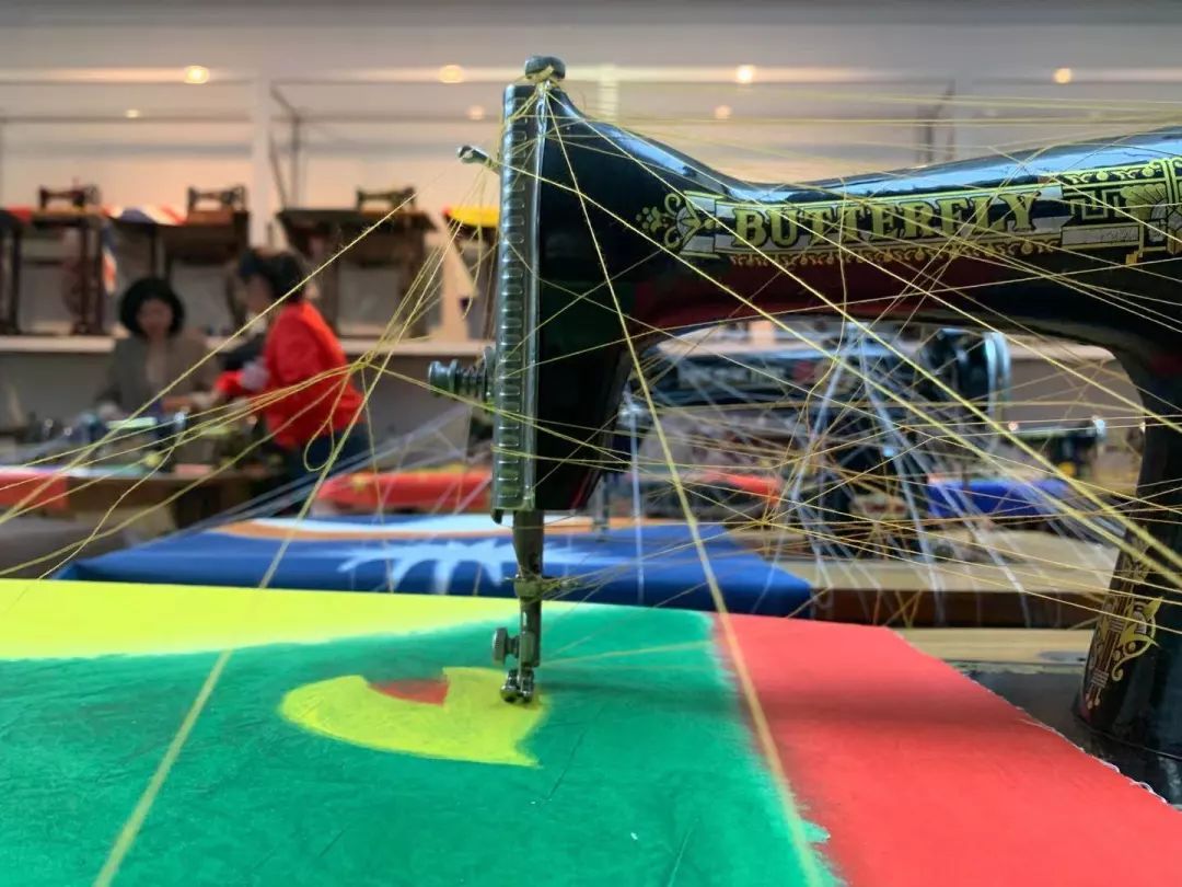 印度艺术家N.S.哈沙的作品《Nations》收集到了近200台本地传统台式缝纫机,预计花费192小时将所有缝纫机及193面国旗缠绕在丝线中。