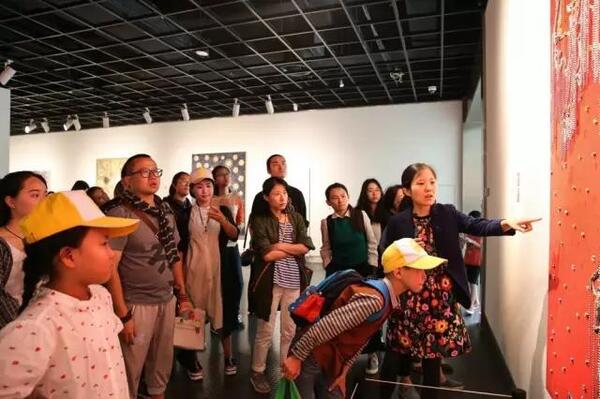 10月9日上午,“我织我在”——第二届杭州纤维艺术三年展策展人许嘉戴着耳麦,站在观众围成的圈子中,用深入浅出的方式,把神秘的艺术图案转化为公众听得懂的语言。