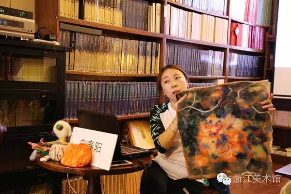 “我织我在:第二届杭州纤维艺术三年展”策展人之一、保加利亚索菲亚国家美术学院副教授,编织艺术系系主任阿萨杜尔·马克洛夫为大家带来《万曼与纤维艺术》的精彩讲座。作为一名国际性艺术家,万曼不但从国际范围上促进、丰富了“现代壁挂艺术”,更在中国语境下启蒙了中国学院体制中的现代艺术创作。他的个人作品中,对各种“软材料”(棕、麻、松紧带等)和“硬材料”(金属、石块等)的运用,不但充分体现出他是一位勇于变革的艺术家,更唤醒人们重新认识艺术与自然与社会的关系。