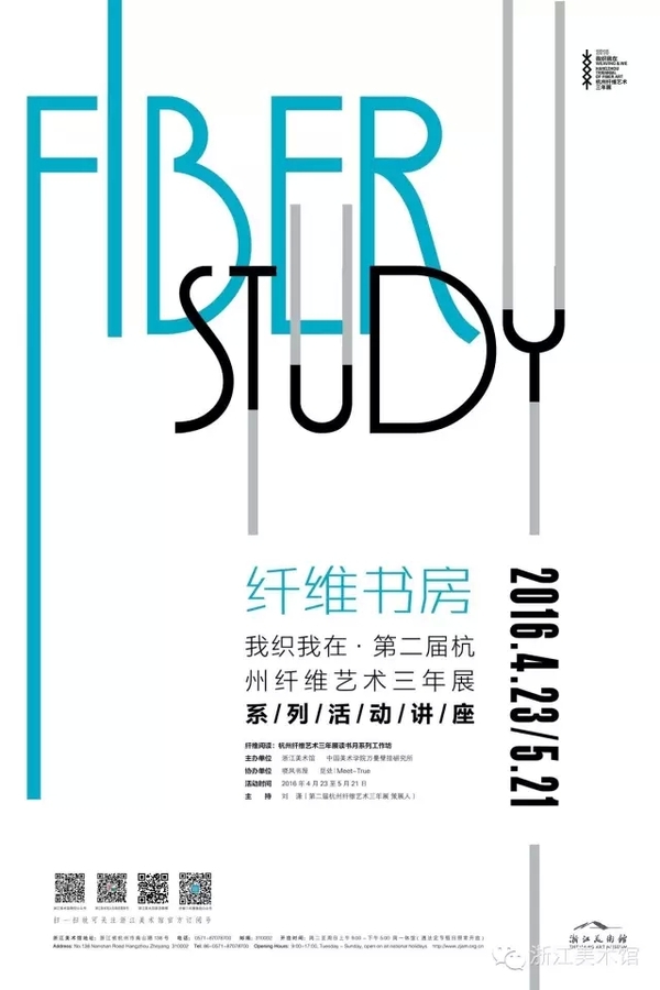 2016 年4月23日世界读书日当天,正在闭馆整修的浙江美术馆与中国美术学院万曼壁挂研究所共同推出了一个特别的艺术项目——“纤维书房”。作为为“第二届杭州纤维艺术三年展”的热身活动,未来的一个月内,在杭城多家晓风书屋内,美术馆将邀请多位嘉宾通过导读、讲座、工作坊等形式,带领公众深入了解纤维艺术,感受纤维艺术的魅力。今年8月浙江美术馆即将开展“我织我在:第二届杭州纤维艺术三年展”,该项目也是这一大展的即将于今年8月在浙江美术馆开展的“我织我在:第二届杭州纤维艺术三年展”的一系列丰富的教育活动之一,将从更为多元的角度逐步为大家逐步揭开大展的神秘面纱。