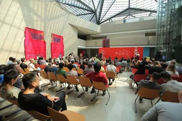刘潇代表策展团队在开幕式上致辞,她从策展人的角度讲述了策展过程中的心路历程。她说,以“织”为核心的感受方式、思维方式、创作方法是策展团队一直希望传递的“织物式的”“如织那般的”艺术的工作。带着这样的思路,团队去到浙江的丝绸产业中间,服装产业之间,走进竹编小镇安吉、诸暨的袜业小镇大唐、曾经杭州最大的纺织厂杭二棉,这些就在我们周围的编织着的地方,为展览提供了充足的背景和养分。生活的织,产业的织,历史的编织,未来的编织,都是共同织造“我织我在”这个柔软的现场的要素。在过去的一个月的展览中,看到了和体会到了纤维艺术展是一个大众的十分喜爱的专业展览,相信纤维艺术能够为大众提供一个专业和学院的柔软的精神品质和心灵空间。