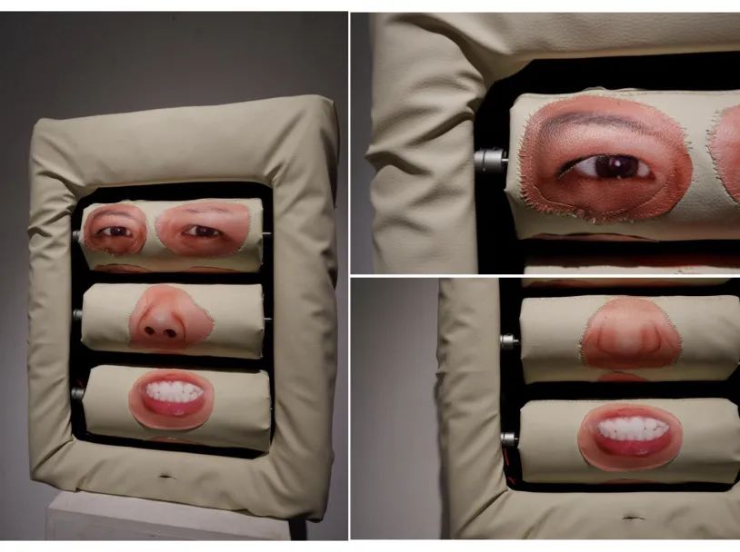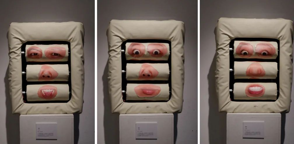 作品释义:三个转轴随机滚动,当你靠近到一定的社交距离,各个五官通过机械化的运作,表达出多种情感。但这些复杂的表情变化始终由一个主体通过内部变化得来,以此来模拟人在社交过程中的状态。