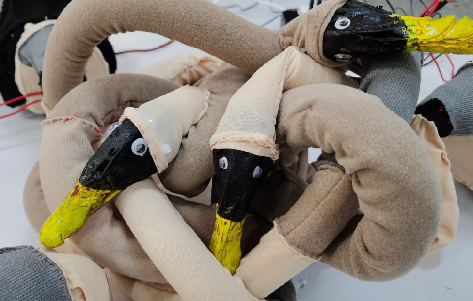 作品材质:弹力布、棉布、电机、水管、橡胶鸭头