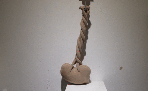 作品释义:这里是三只大雁的头和身体,它们的脖子紧紧盘绕在一起。安排呆板,气氛紧张,在不信任中僵持着。
