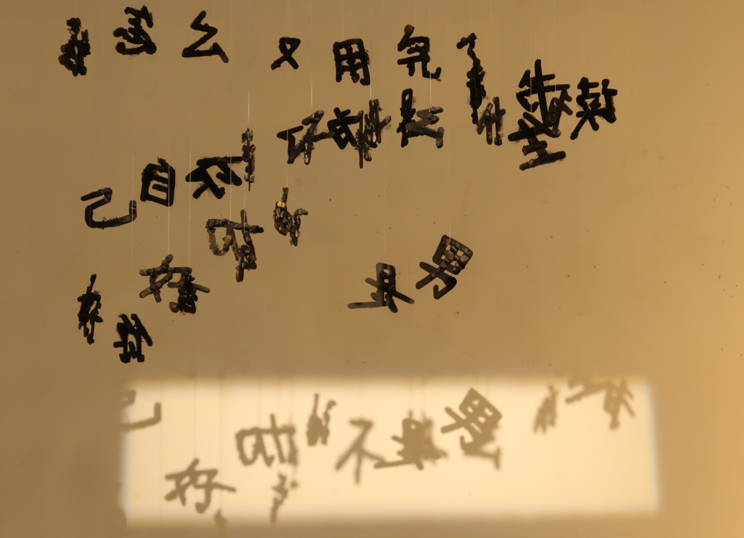 作品释义:我们通过看“字”、听“字”来解读其中的含义,不同的文字排列组合成不同的形式语言,传递情绪,表达情感。文字与生活便是一种共生共存的关系。正如家庭这种无法分割的纽带所诉说的言语能带来多重的负担。我的作品通过对三维立体文字的解构,进行投影成像,使得在平面上呈现二维的视觉效果。三维与二维的“家语”最终聚集在一起,形成无声胜有声的画面。支离破碎却又在不断重组揭示新的意义。