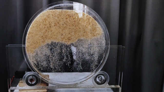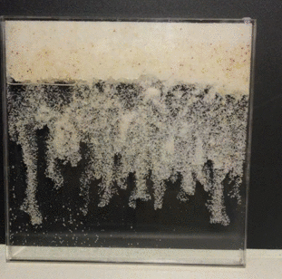 作品释义:沙砾与油这两种不同的物质在重力作用下,显示出各种自然形态的共生关系。