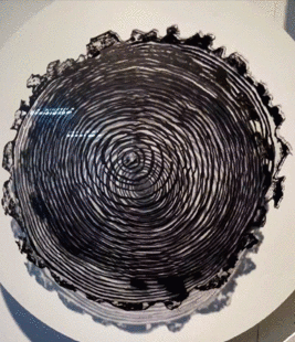 作品释义:Evermore,译为永远、永恒。从不同树木上截取不同位置的年轮相互重叠,交相呼应,经过不断做圆周运动形成一种类似于漩涡一样的图案,令人晕眩和着迷。两个象征着不同时间的年轮相互呼应,似乎带来了无穷的时间与无限的遐想。不同的年轮也象征着不同的个体,它们另一个年轮相互呼应,像是个体与个体间进行了某种联系,从而达到了微妙的效果。