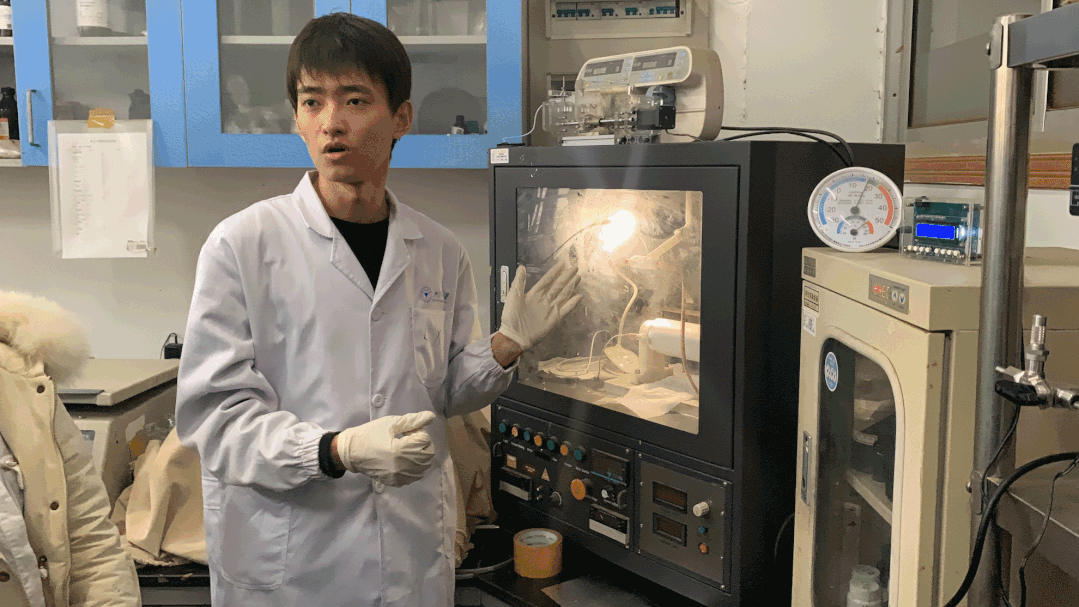 浙江大学研究生李想给同学们讲解静电纺丝的过程