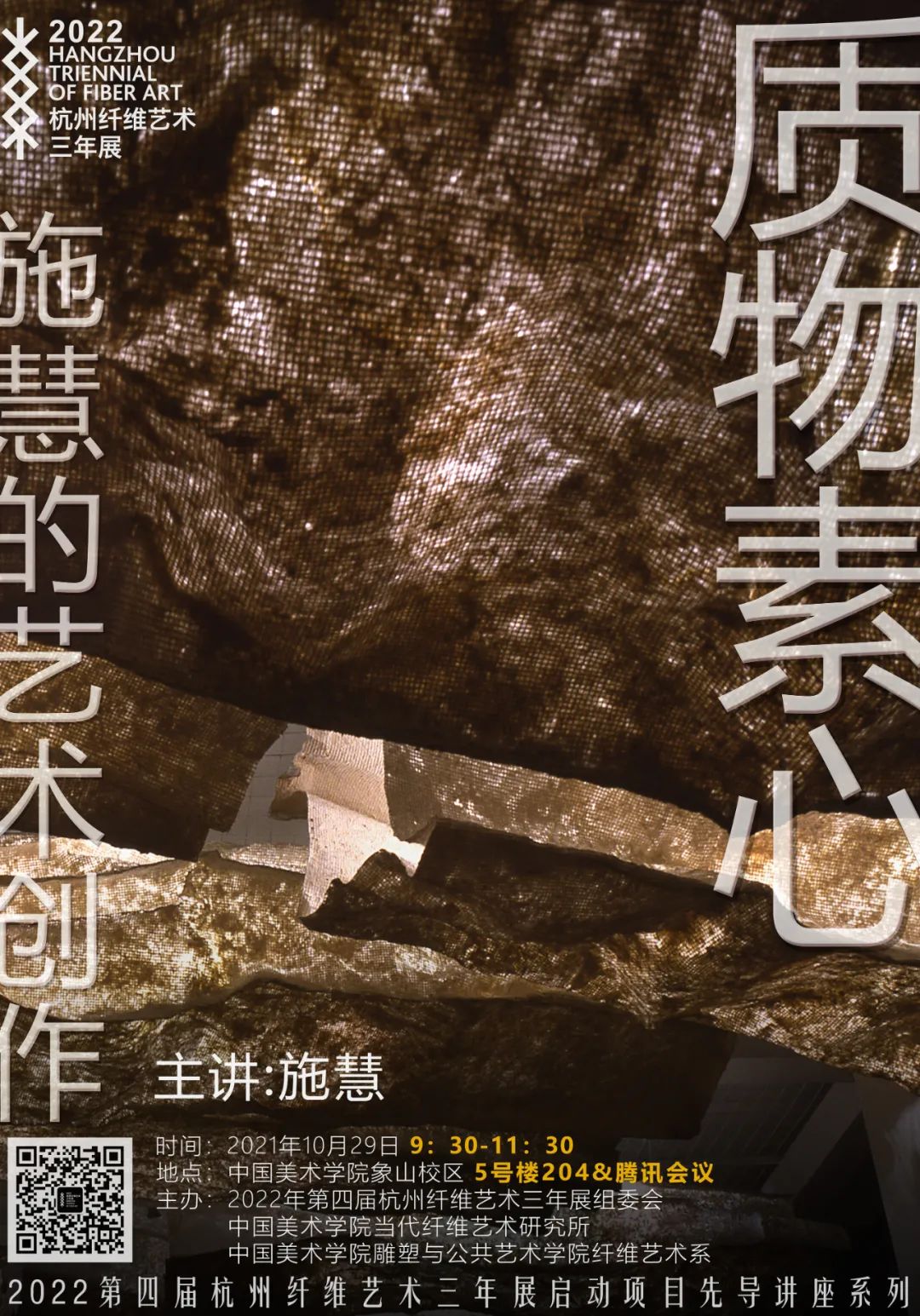 施慧,中国美术学院教授、博士生导师,杭州纤维艺术三年展发起人。1986年开始从事当代艺术创作,作品以棉、麻、植物、宣纸、纸浆等纤维材料为特征,以现代意义上的创作构架以及对材料运用的敏感和娴熟技能,使创作趋于纯化和成熟。施慧在教学岗位上耕耘了近40年,先后从事染织专业、环境艺术专业和雕塑专业的教学,使她成为一个跨学科的实践者,具有开阔的视野和胸怀,从而也形成她艺术跨界性的实验特征。
