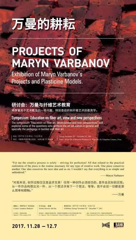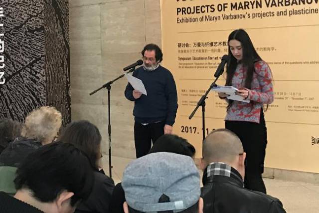 策展人阿萨杜尔·马克洛夫教授简要介绍了万曼先生以及当代纤维艺术发展的进程,提到虽然我们现在无法通过万曼本人解读他的作品,但我们能通过他的艺术作品、他与其他人合作的项目以及直至今日其追随者仍在追溯的万曼的点点滴滴来理解他。