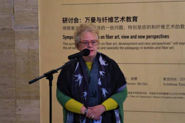 伦敦大学伦敦大学金史密斯学院詹尼斯·杰弗里斯教授在致辞中认为万曼是“东方”和“西方”的桥梁,并从教育学的意义中表示我们对与纤维艺术的探索将影响着下一代的追求。
