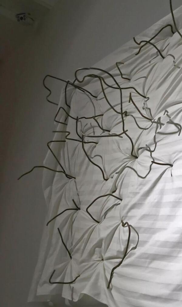 Waste steel, sponge, sheet 废弃钢筋,海绵,床单 430 x 300 cm