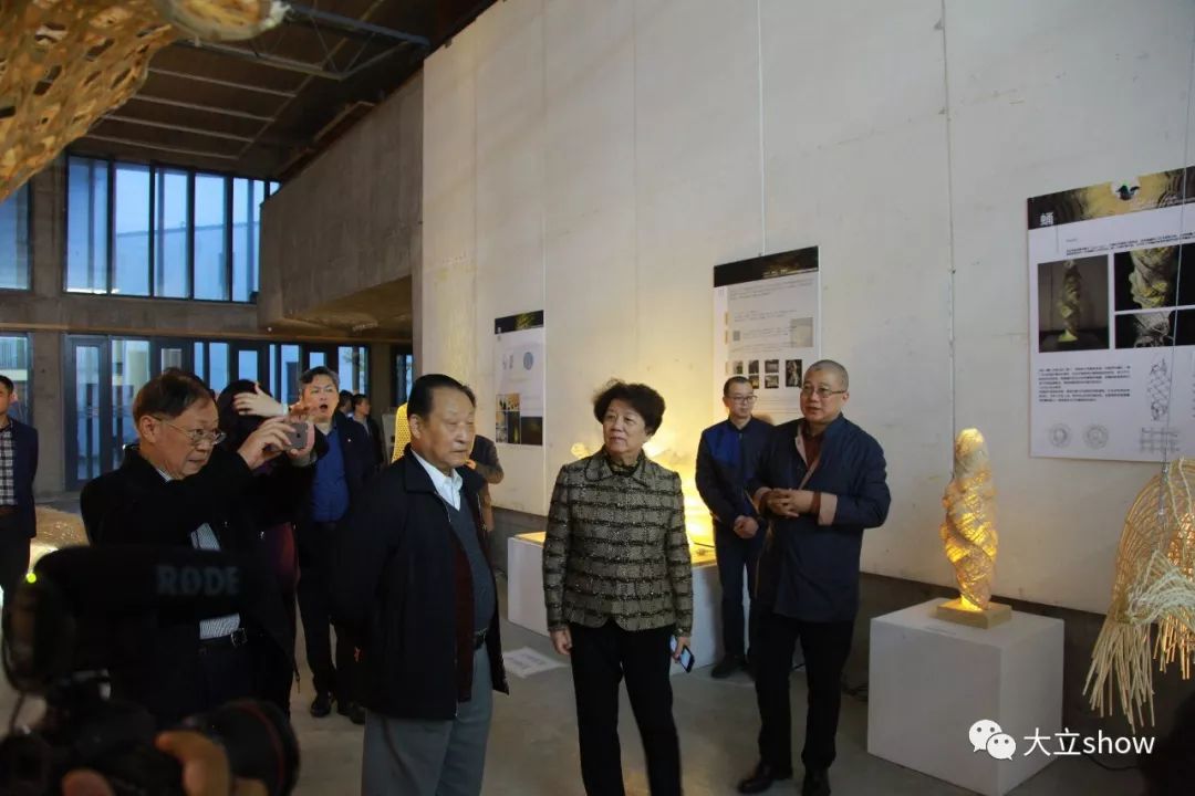 原中央工艺美术学院院长常沙娜、山东工艺美术学院院长潘鲁生、副院长李新、现代手工艺术学院院长赵进、美术馆馆长及建筑学院副院长李文华、覃大立教授及现代手工艺术学院老师们参观《编织陈设》课程教学成果展览后合影留念
