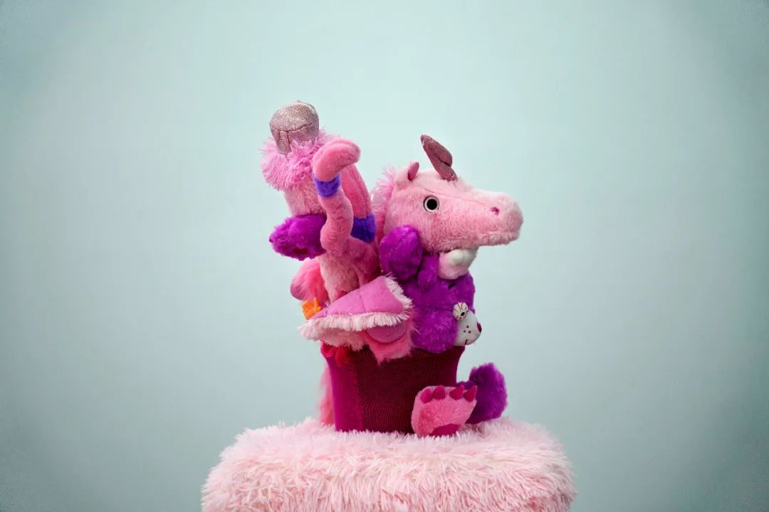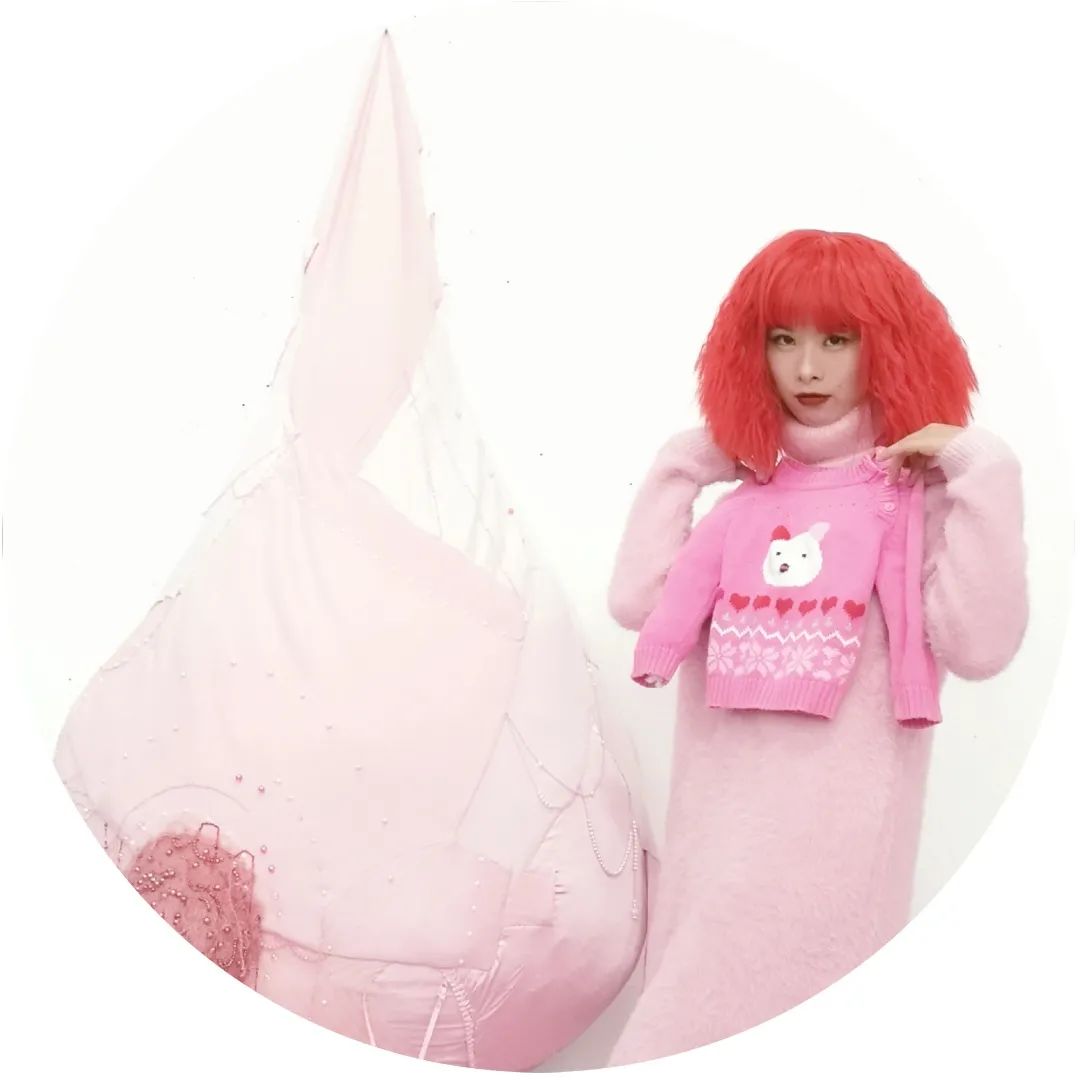 我想用这些粉色的衣服来营造一个空间来讨论亲子关系中爱与暴力、保护与束缚的关系。