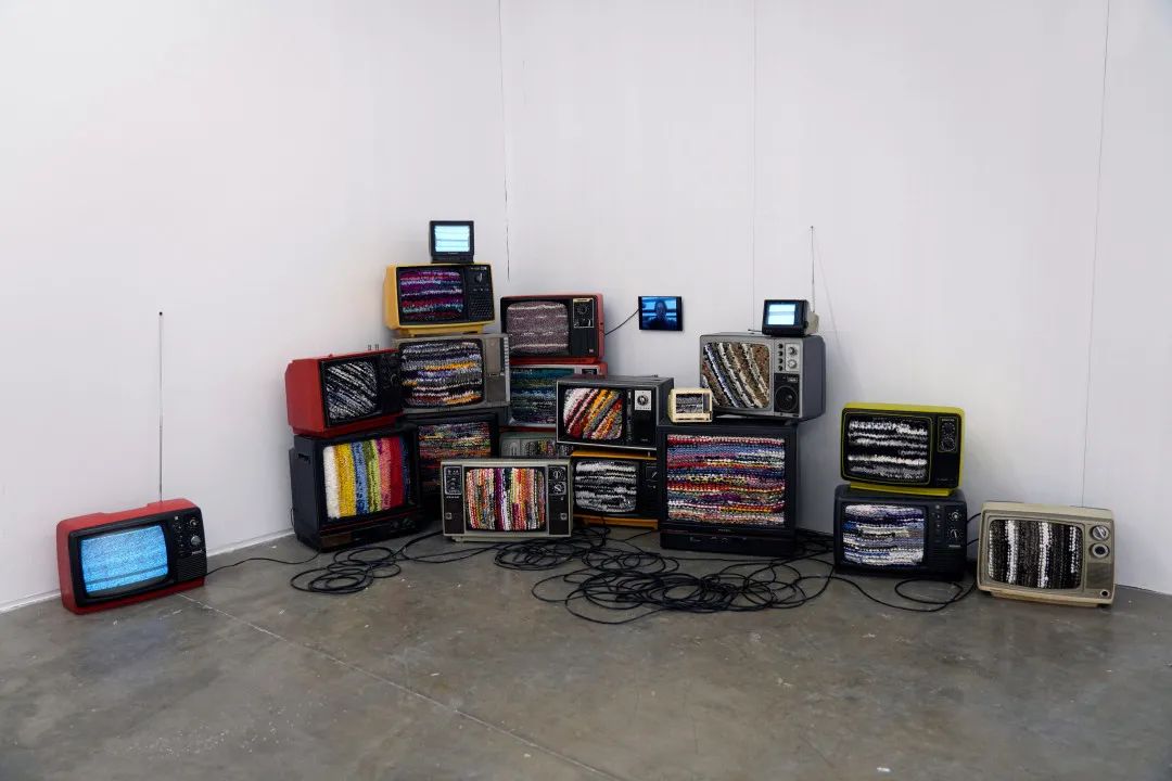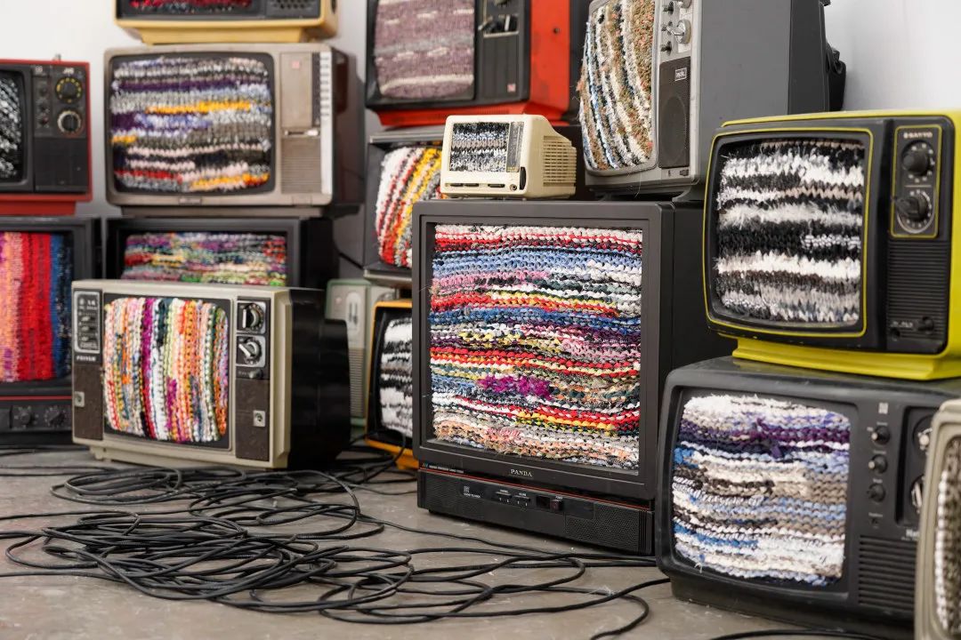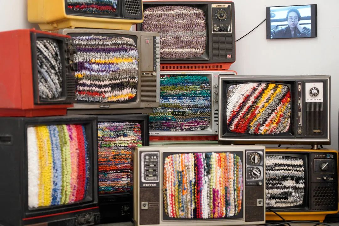 作品介绍:一个即将被现代人所遗忘的岁月物件,一堆旧时的废弃衣裳。我将老衣分解,撕成碎条,又重新针织组合,形成不同的雪花图案。当它与老电视结合在一起,故事以一种新的方式延续。