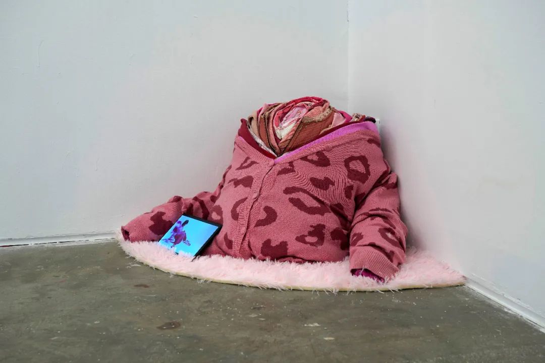 罗诗琳的创作大多是从切身的日常生活出发,并围绕着家庭、女性等问题进行反思,比起“人会怎么做”,她更多的是从根源去思考“人为什么要这么做”。作品中大量运用织物、毛毡等纤维材料,以此来表达织物带给人的不仅仅是保护和温暖,也有束缚和暴力,而这种冲突也正是她作品中想表达的。