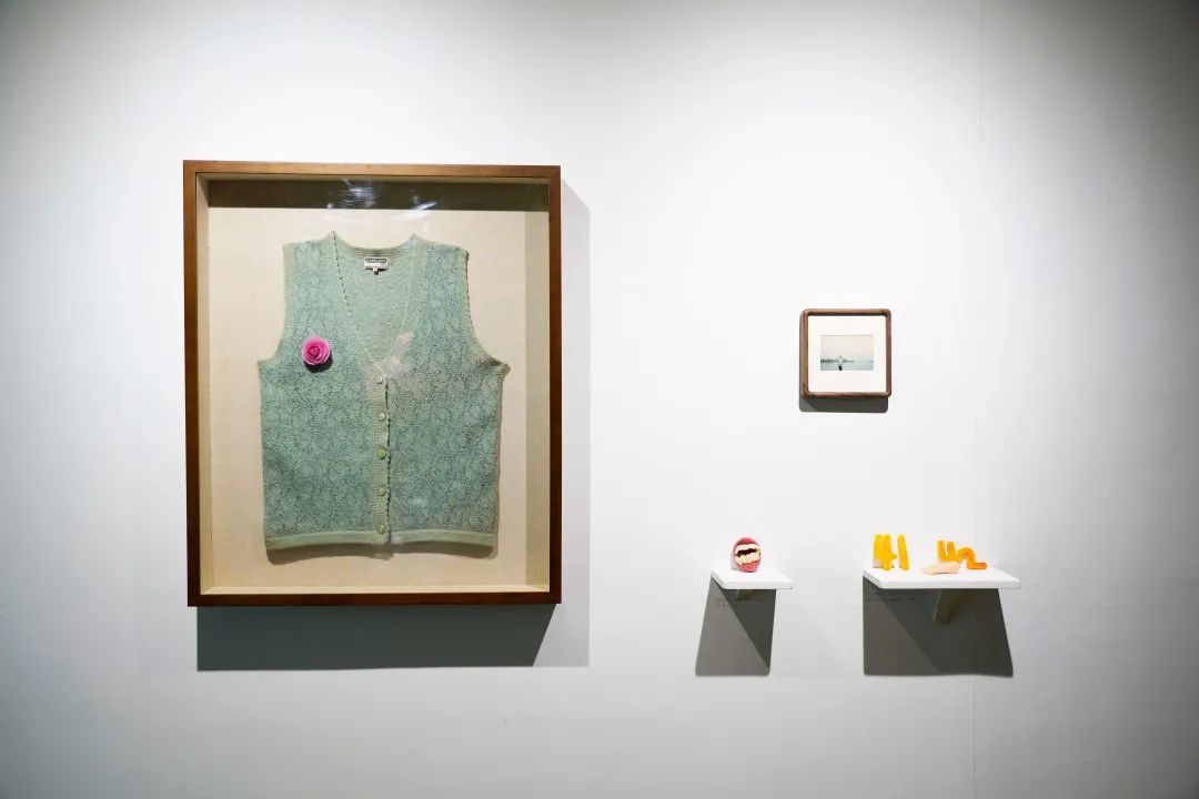 作品介绍:我能用眼睛去看这张旧照片,能用手去摸这件照片里的绿背心,能去想照片里的人,我努力想让脑子里母亲的脸更清晰一些并把她画下来,可是我不能,记忆里的脸始终是模糊的。当我没法面对面看到她,触摸她的时候,似乎在我脑子里出现的关于我母亲的形象只是一些被抽象过的符号,我尝试把这些形象画出来,做出来,她的嘴好像长这样,具体是什么样呢?我也不太清楚。不禁想起小学时的作文《我的妈妈》, “我的妈妈有一双大大的眼睛......”