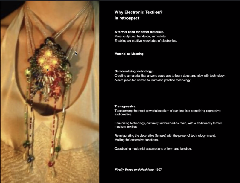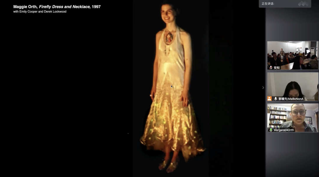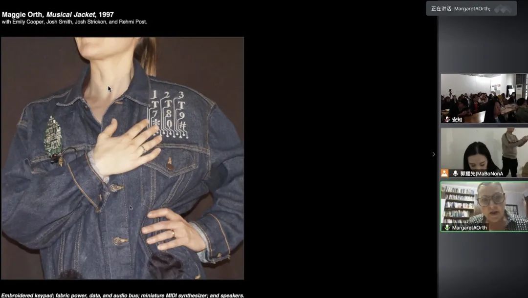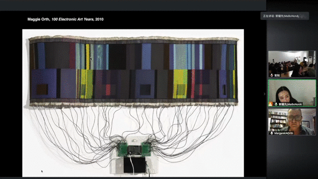 玛吉·奥思(Maggie Orth)作为电子织物行业的先锋,在讲座中分享了她自1996-2015年开始的,关于纤维艺术与电子技术跨界域的创作历程与心得。