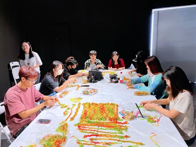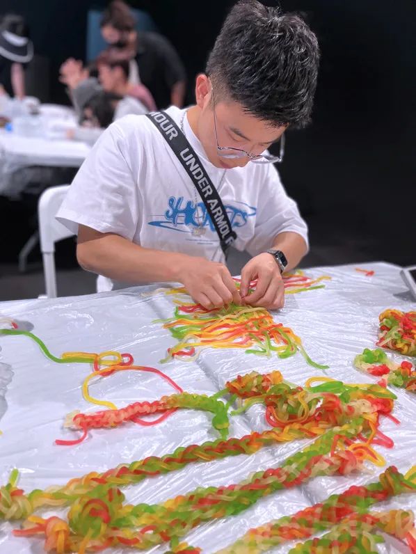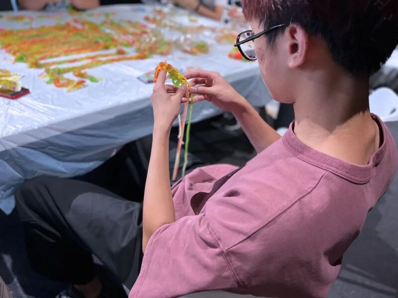 △ 参与者们在工作坊现场编织香甜的糖绳