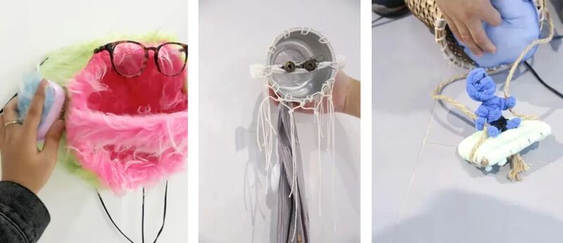 改造完成,将作品与声音装置连接进行实验。参与者可将话筒在物件的内外部进行摩擦,按压,旋转等动作,当话筒拂过物件本身的材质与经过参与者改造的材质,不同的结构将会赋予这个物件专属于自己的音色。