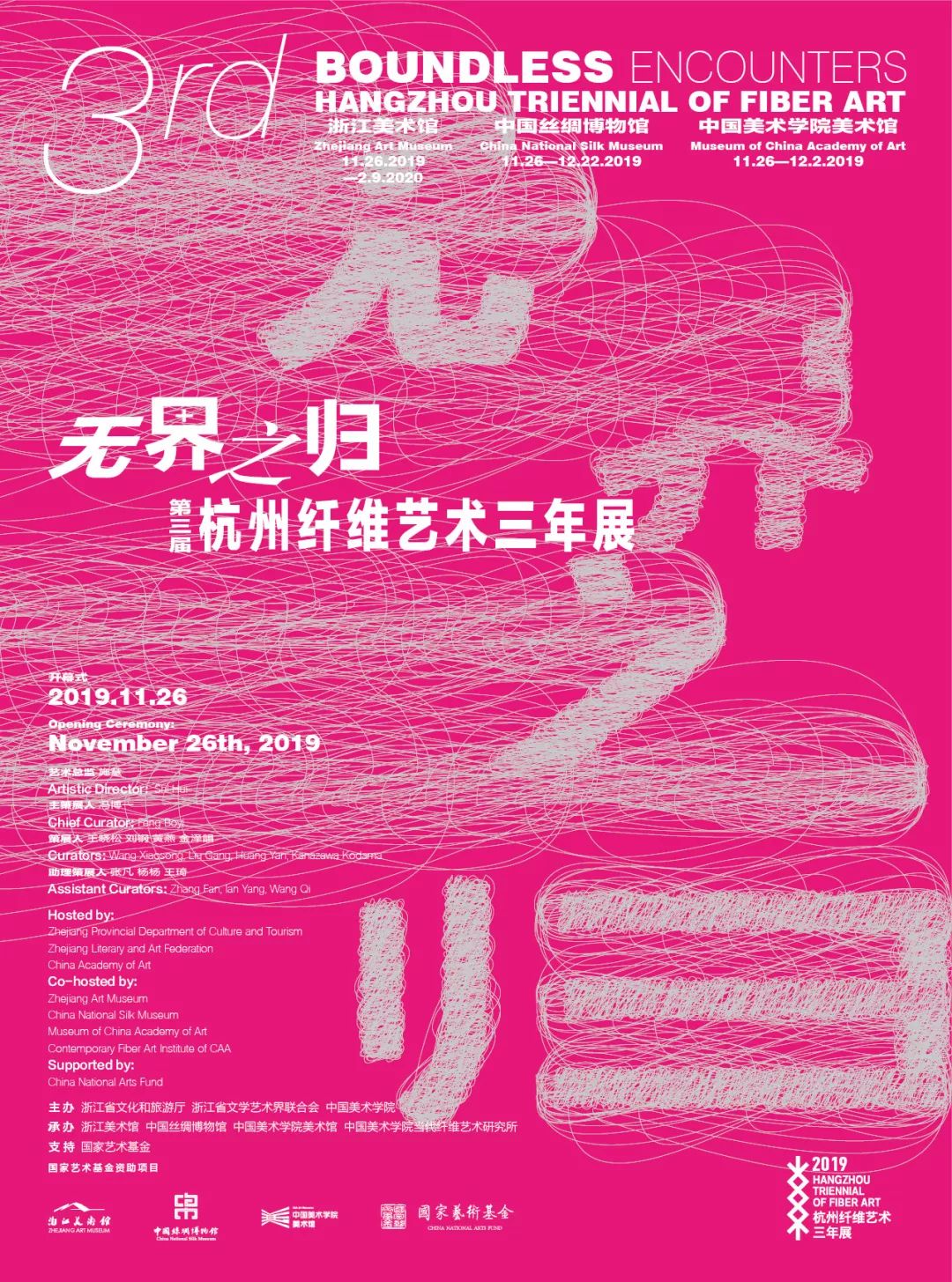 “无界之归”2019第三届杭州纤维艺术三年展已于11月26日在浙江美术馆、中国丝绸博物馆、中国美术学院美术馆正式开幕,11月26日、27日在浙江美术馆还举行了“线场——国际纤维艺术的多项链接”国际学术研讨会。