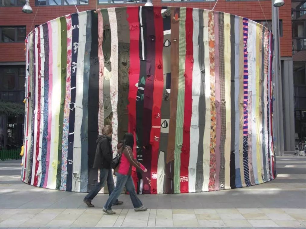 本届杭州纤维艺术三年展中,尹秀珍根据场馆的现有条件,用七天时间、七个展厅,呈现了近年创作的七件作品。使用“七天”的间隔、次序和寓意构成了尹秀珍这次阶段性创作的研究性个案。她以纤维为主要媒介,或纤维的思维方式,通过收集、置换、拼接等各种织物,将个人经历、记忆痕迹和时代变化缝合、编织在一起。