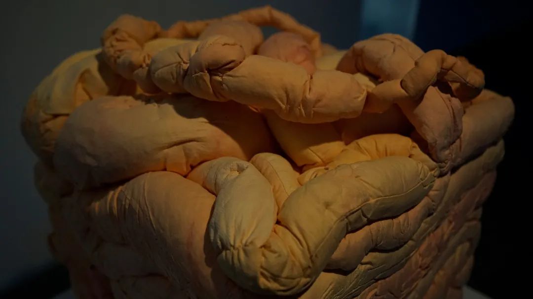 答:有。我的作品本身就是以毛线编织的状态呈现的,而在其背后更是一种人与人之间的交织关系,比如打毛线时的交流、织物传递的情感,都连结着你我的时间与记忆。