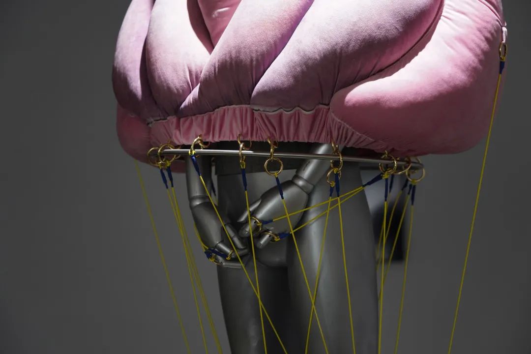 作品介绍:灵感来自于卡莱尔的《衣裳哲学》——"衣裳"是世界的"外貌"的隐喻。衣裳似乎是文明社会的产物,也是人类生活的基本需求,基本需求的满足与饱和促使我们寻找更大的快乐,并满足虚荣的内心。这种行为就其本身而言是无意义的,除非它们服务于更高的理想,否则,此种关注只会是空洞的潮流……表面上作品展现出人和衣服的关系,实则是表现一种社会现实。当我们陷入其中,一方面过度粗放,另一方面又被惯性束缚,这个“套”既是固化的观念捆绑,也是一种自我惯性的束缚。